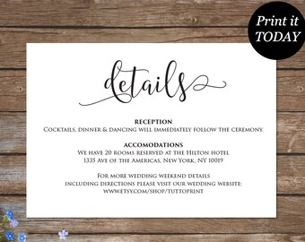 Wedding Details Template Wedding Information Card Rustic Etsy