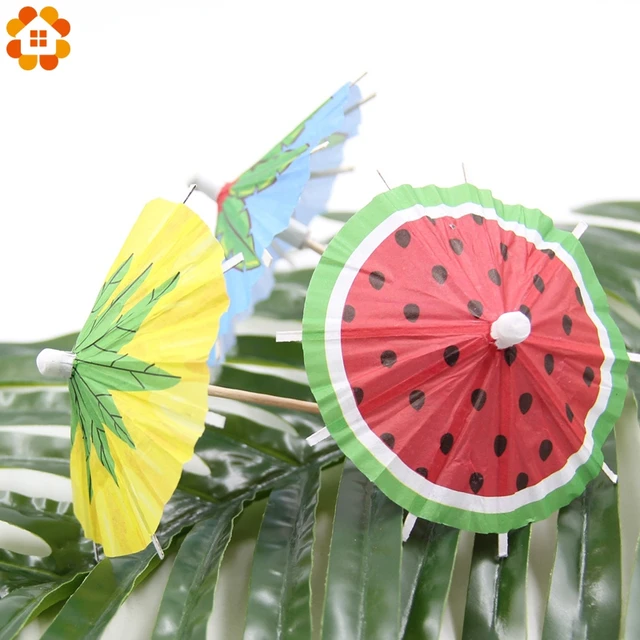 20pcs Coconut Leaves Watermelon Diy Paper Umbrella Cake Topper Picks