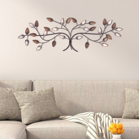11 X32 Bronze Tree Branch With Gold And Silver Leaves Metal Wall