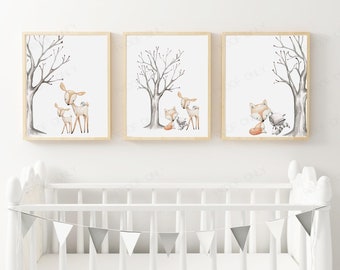 Woodland Nursery Woodland Wall Decor Kids Teal Gray Forest