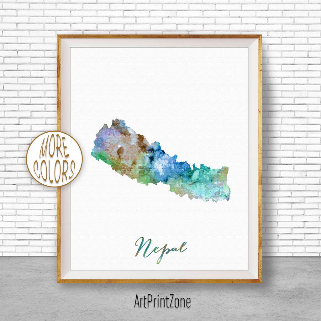 Nepal Map Decor Nepal Print Nepal Art Print Watercolor Print Wall