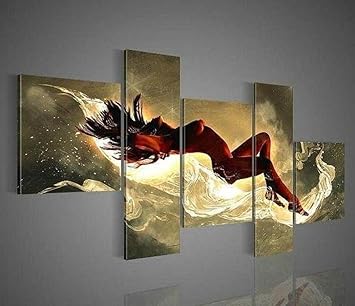 5 Panels Unframed Wall Art Painting One Piece Lufei Hanging In Home