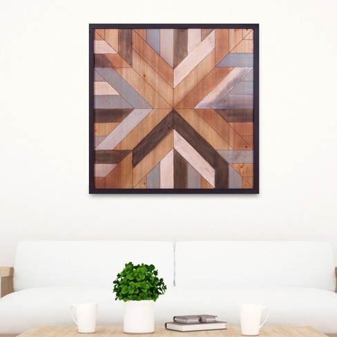 30 X30 Geometric Quilt Wood Wall Art Brown Patton Wall Decor Target