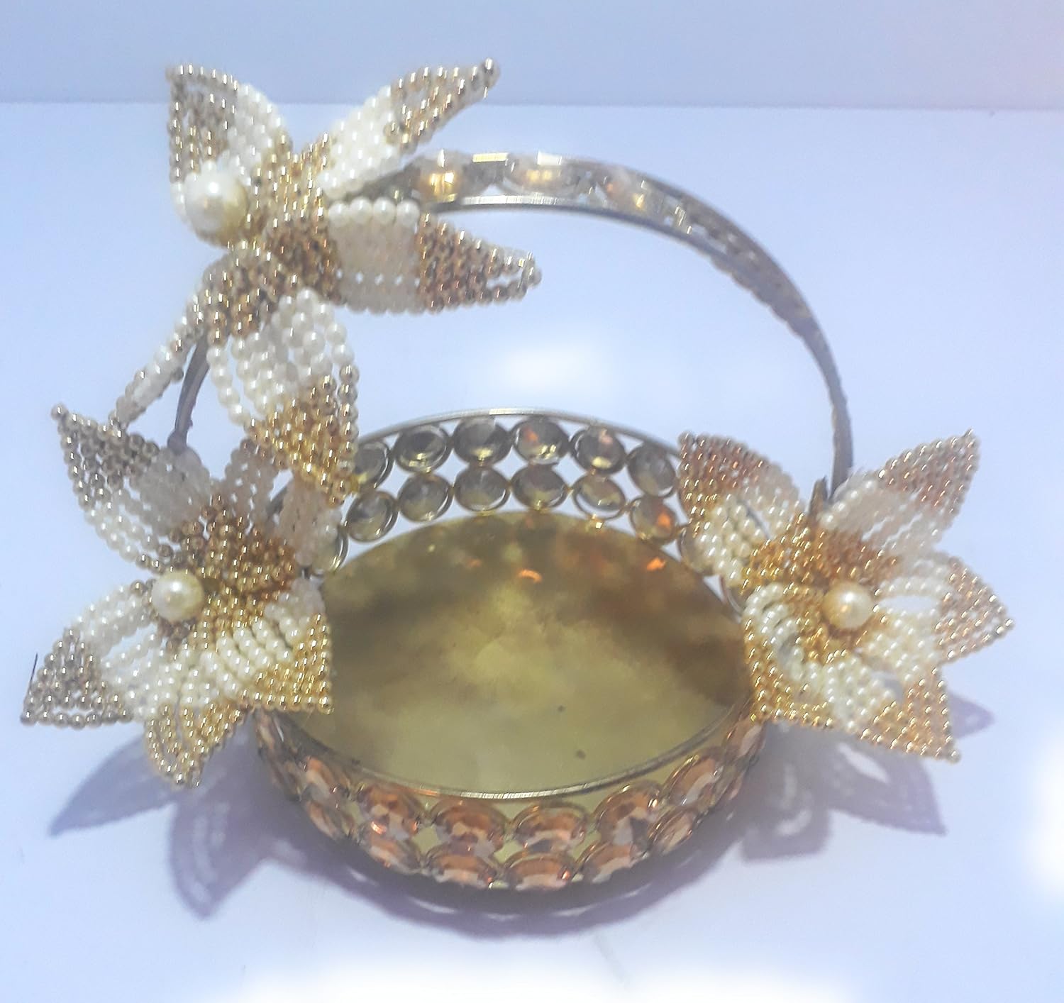 Beautiful Indian Wedding Tray With 5 Golden Roses On It