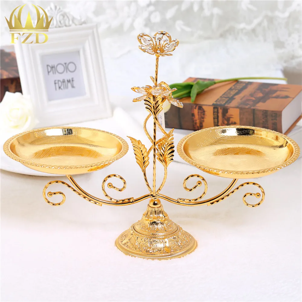 Online Shop 2 Layer Golden Plate Metal Fruit Serving Tray Cake Plate